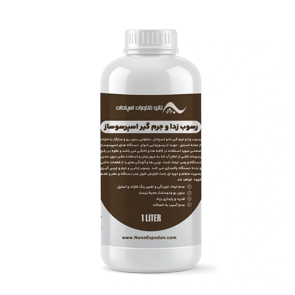 محلول جرمگیر و رسوبزدا اسپرسو ساز و قهوه ساز نانو اسپادان، یک پاککننده قوی و ایمن برای انواع دستگاههای اسپرسوساز صنعتی و خانگی است. این محلول بدون بو و سازگار با فلزات، بهویژه استیل، طراحی شده است تا رسوبات ناشی از املاح آب، چربیها و آلودگیهای باقیمانده در قطعات داخلی دستگاه را بهطور کامل از بین ببرد. استفاده منظم از این محلول باعث افزایش عمر مفید دستگاه و بهبود عطر و طعم قهوه خواهد شد.